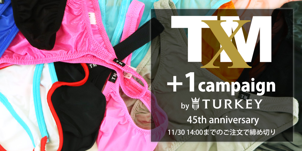 キャンペーン内容 | TM collectionを製造し、TxMを運営するターキーが45周年! 皆様に支えていただいている感謝を込めて、TxMで5,000円以上のお買い物をしていただくとビキニを1枚プレゼントいたします♪ プレゼントのビキニは45年にちなんで450枚をご用意いたしました! どうぞご利用くださいませ。 |