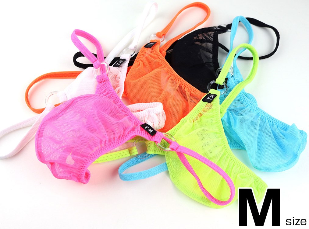 伸びのあるスケ素材(マシュマロパワーネット)を使用したTバックビキニです!フロント部分に15mmのシルバーのリングを付け、エロかっこよく仕上げました!この夏は透け感を楽しみましょう♪フロントフルシーム