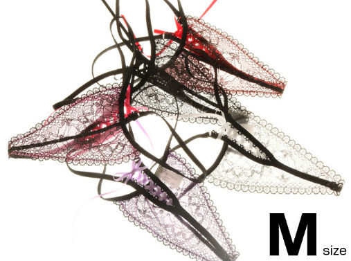 ブラックのストレッチレースを使用した凝った作りのTバックです。バックをサテンのテープで編み上げており見せパンとしても活躍してくれそうです!Men`sも有り