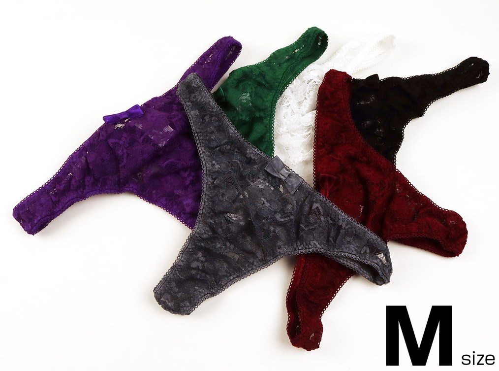 柔らかく可愛らしいストレッチレースを使用したTバックショーツです!レース素材に今回はダークカラーと、とってもセクシーになりました!身生地を縁取ったピコゴムが、さらに可愛らしさをアピールしています!真ん中のリボンが決め手です♪♪M/Lsize有り