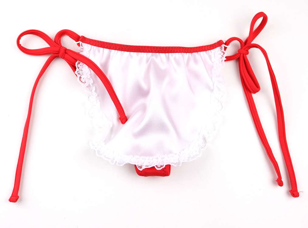 柔らかい水着素材MATを使用したエプロン風Tバックです!エロ可愛い雰囲気で前身も取り外し可能です!前身のサテン生地部分にはレースを施し可愛さUP!!横ヒモタイプですので横から解いても良し、前身をチラ見せさせても良しです♪