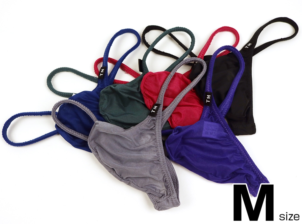 クリアースキン(透きとおるような見た目と柔らかさ・ストレッチ性・肌ざわりを兼ね備えた素材)を使用したもっこりシャープスタイルの上向き収納バージョンのTバックビキニです。ジャストインパクトとは違いなめらかな曲線で上向きにもっていくパターンです。フロントフルシーム M/Lsize有り